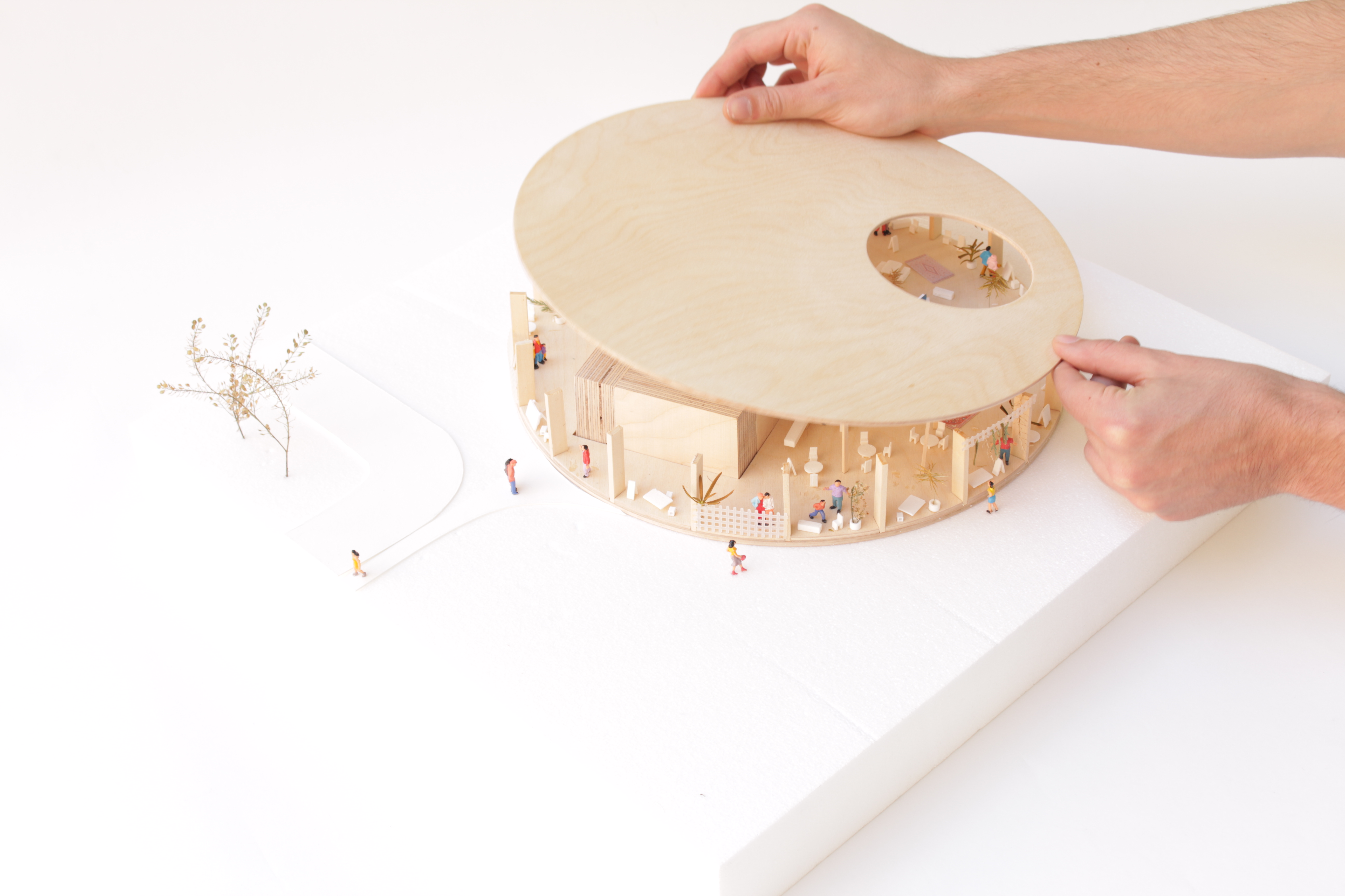 We answer this question by proposing a minimal frame; a blank canvas where the architectural design disappears, and the pavilion becomes a landmark exclusively through the community´s intervention.